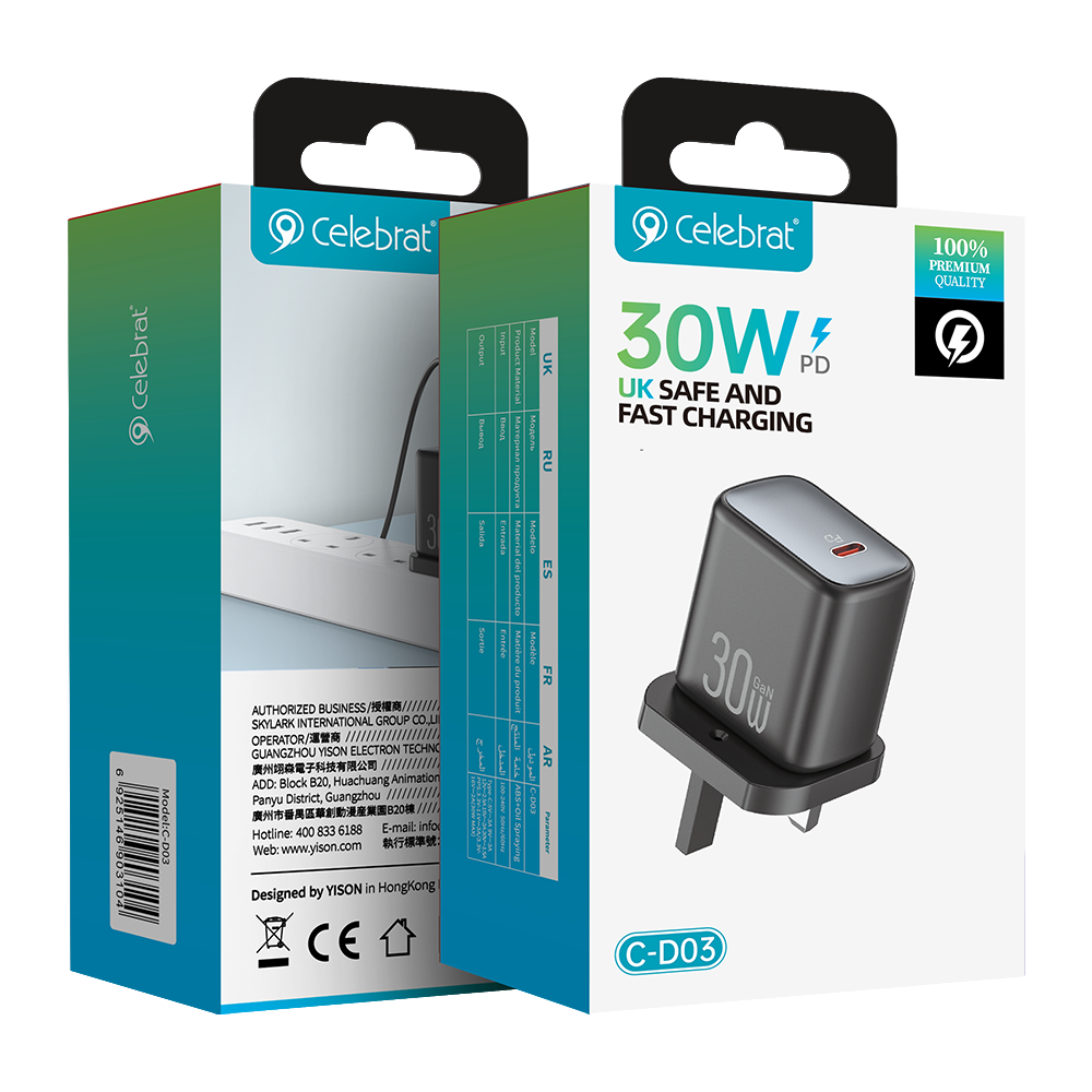 Celebrat C-D03 30W PD GaN Fast Charger – Compact UK Power Adapter